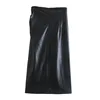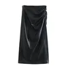 Za Women New Fashion Folds Sexy Midi Leather Skirt Vintage High Waist Rear Zipper Side Split Hem Female Skirts Mujer