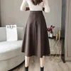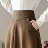 New Arrival High Waist Winter Skirt Women 2021 Office Lady Pockets A-Line Elegant Knee-Length Woolen Skirts Khaki Black Faldas
