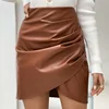 Tops Women 2021 Design Irregular Leather Skirt Female A-line Skirt High Waist Hip Wrap Skirt Semi Raw Skirt Female юбка женская