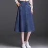 2022 Spring Summer Casual Jean Skirts Women's High Waist A Line Long Denim Skirt Female Jeans Midi Faldas Mujer