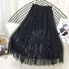 Spring Summer Skirts Women Korea Long Tulle Skirt Sequined Pleated A Line Skirt Chic High Waist Skirt Female