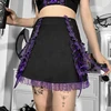 Gothic Dark Academia Color Contrast Lace Straps High Waist Short Pleated Skirt Sexy Streetwear Women Mini Skirt Summer Clothes