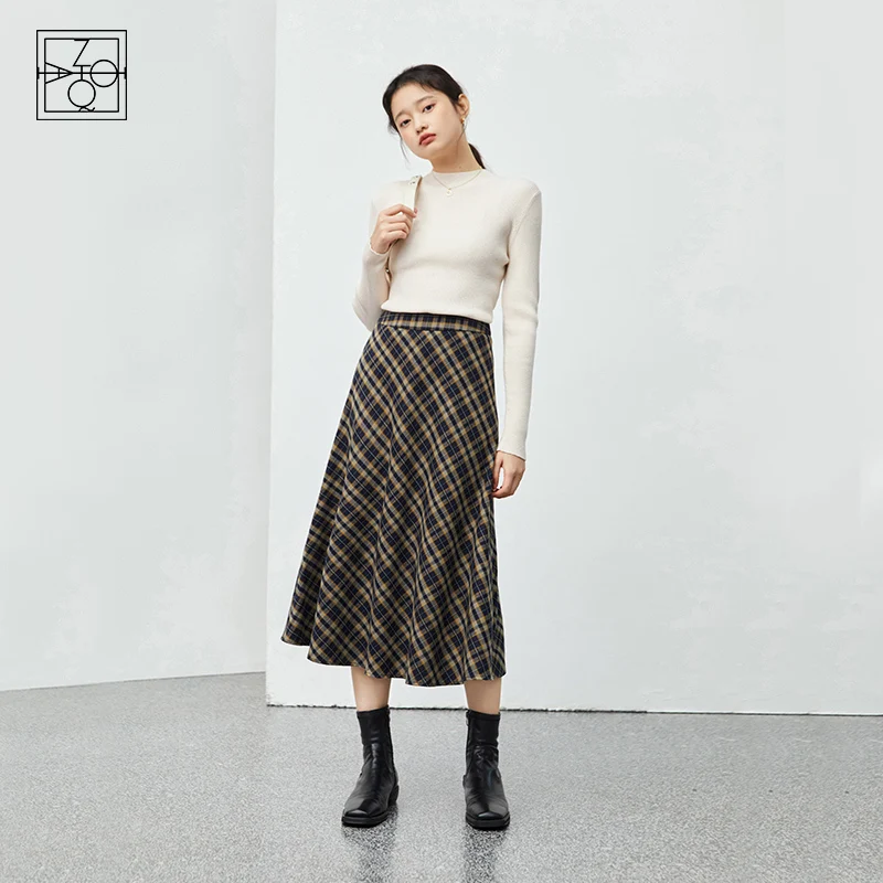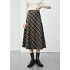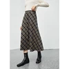ZIQIAO Women's Winter Thick Retro Plaid Mid-length A-line Umbrella Skirt Side Zipper High Waist Slim Contrast Skirt Women Bottom