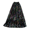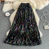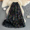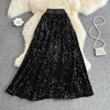 2021 Autumn New Elastic High Waist Slimming Sequins Mid-Length A- Line Skirt Y2k Women Fashion Overknee Glitter Big Hem Skirts