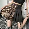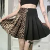 Goth Dark Leopard Patchwork Pleated Skirt E Girl High Waist Slim A Line Mini Women Skirt Streetwear Punk Harajuku Y2k Clothes