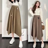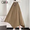 CAIFISH Autumn Winter Women Pleated Skirt Vintage Irregular Ruffle High Waist Skirt Casual Office Lady Midi Skirt QT1249