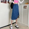 2022new New Summer Women Lace Patchwork Retro Blue Medium Denim Skirts Casual Female A-line Hole High Waist Ladies Jeans Skirt