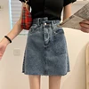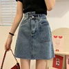 2022new High Waist Women Asymmetrical Retro Blue A-line Mini Denim Skirt Summer Female Streetwear Size Ladies Jeans Skirts
