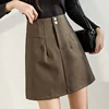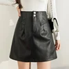 2022new Streetwear Female Faux Leather Short Skirts Moto Biker High Waist Button A-line Warm Mini Skirts Ladies Chic OL Bottoms