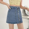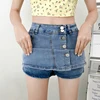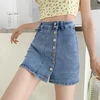 2022new New Summer Women High Waist A-line Retro Blue Denim Shorts Casual Female Single Breasted Retro Ladies Jeans Shorts
