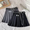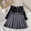 Chain Black Pleated Skirt Women Female Spring and Autumn 20201 New Tooling Skirt High Waist Thin A-line Skirt Retro Skirt Goth