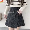Winter Skirts Women 2021 New Korean Fashion High Waist A Line Black Or White Woolen Skirt Back Zipper Up mini faldas With Lining