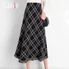 CAIFISH Retro Harajuku Plaid Skirt Women Autumn Winter A-line Black Pleated Skirt Office Lady Women‘s Long Maxi Skirts QT1288