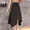 CAIFISH Elegant A-line Asymmetrical Pleated Black Skirt Plus Size Bodycon Long Skirts Retro Korean Skirts Womens 2021 QT1253