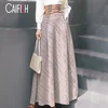 CAIFISH Autumn Winter French Chic Vintage Skirt High Waisted Button Back Lace-Up Skirt Women Thick A-Line Long Maxi Skirt QT1283