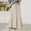 CAIFISH Autumn Winter Swagger A Line Skirts Elegant High Waisted Knitted Maxi Skirt Casual Pleated Skirt Korean Style QT1280