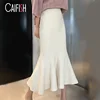 CAIFISH Fishtail Bodycon Knitting Skirt Women Striped Slim Pleated White Skirt Fashion Korean Skirts Womens For Winter QT1316