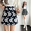Woolen Embroidered Skirt Women 2021 Winter New Korean Fashion High Waist A Line Floral Mini Skirts All-match Casual faldas mujer