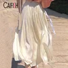 CAIFISH Summer Woman French Tulle A-line Pleated Skirt Streamer Oriental Long Maxi Skirts White Luxury Skirt Women QT1317