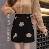 Winter Skirts Women 2021 New High Waist Embroidered White Or Black Mini Woolen Skirt With Lining Korean Style Casual jupe femme