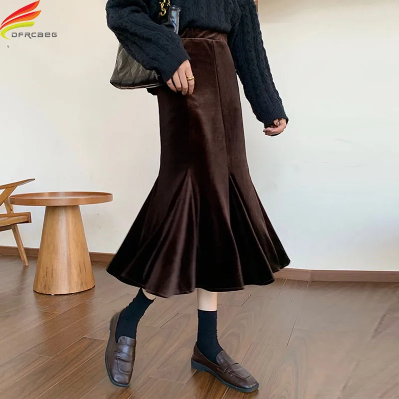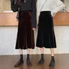 Velour Winter Skirts Women 2021 New Arrivals Korean Fashion High Elastic Waist Long Mermaid Skirt Black Or Brown faldas largas