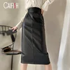 CAIFISH Fashion Slim Leather Skirt High Waisted Bodycon Sexy Split Skirt Retro Oversized Plus Size Long Maxi Black Skirt QT1318