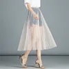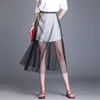 Women Sexy Mesh Lace Transparent Long Tulle Skirt Korean Fashion Summer Ladies Elastic High Waist Black White Beach Midi Skirt