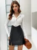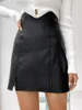 SRUBY Black PU Leather Womens Skirts Autumn Winter Sexy High Street Bodycon Mini Skirt Female High Waist Split Hem Skirt