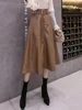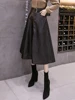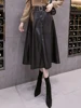 CAIFISH PU Leather Pleated Skirt Bodycon Long Maxi Skirts Autumn Winter 2021 Retro Fashion Women's Pencil Skirt Black QT1270