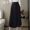 CAIFISH Summer High-waisted Maxi Pleated Skirt Black Pencil Office Lady Bodycon Skirt Elegant Long Skirts Korean Fashion QT1272