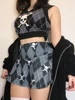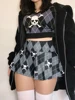 InsDoit Gothic Clothes Y2K Skull Print Grey Skirt Diamond Aesthetic Sexy High Waist Mini Skirt Streetwear Emo Punk E Girl Skirts