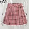 Sylcue All-Match Japanese Girl Powder JK Check Belt Skirt Female 2021 Autumn And Winter New Splicing Sweet Package Hip Silm