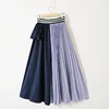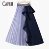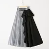 CAIFISH All-match Contrasting Color Pleated Skirt Long Maxi Luxury Skirt Women Striped Ruffles Asymmetrical Cake Skirts QT1239