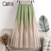 CAIFISH High-waisted Long Pleated Skirt Contrasting Color Mesh Maxi Skirt Retro Floral A-line Skirts Woman fashion 2021 QT1238