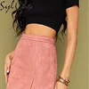 Sylcue All-Match Retro Fashion Street Suede Texture Bag Hip High Waist Zipper Autumn And Winter A-Line Solid Color Skirt