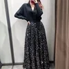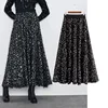 French sweetness Women's Skirt Za 2021 Fashion Bright light elegant Laminated decoration High Waist Big hem Female Long Skirts