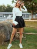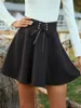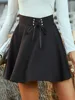 SRUBY Lace Up Waist Flare Skirt Ruffles Skirts Shorts Women Pleated Skirt Mini Short Punk Skirt Bandage Short A-Line Mini Skirt