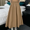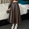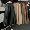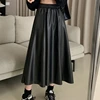 Women Vintage Solid Leather Skirts Office Lady Elegant High-Waisted Pu Midi Skirts Femme Fashion Party Autumn Bottoms