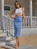 SRUBY Button Front Longline Denim Skirt Retro Long Summer Denim Skirts Girls High Waist Split Jeans Straight Maxi Denim Skirts