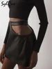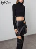 Sylcue Design Sense Tailoring Classic Black Matte Simple And Generous All-Match High Street A-Line Zipper Women's Short Skirt
