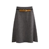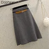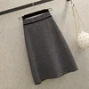 Elegant Plaid Knitted Midi Skirt for Women 2021 Spring and Autumn New Fashion Stretch High Waist Houndstooth Wool A- Line Skirts