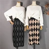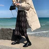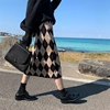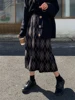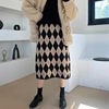 New 2021 Autumn Winter Women Skirts Checkered Knitting High Waist Fashionable Vintage Leisure Elegant Long Skirts