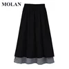 MOLAN Elegant Plaid Woman Skirt Streetwear 2022 Summer New Vinateg Party Long Straight Skirt Retro Black Female Chic Skirt