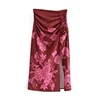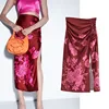 Women's Skirt Za 2021 New Fashion Folds Sexy Flower print Vintage High Waist Rear Zipper Side Split Hem Female Skirts Mujer