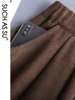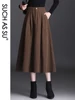 SUCH AS SU New Wool 2021 Women Button Black Brown High Waist Pleated Skirt Autumn Winter S-3XL Size Female Mid-Long Skirt 7129