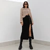 Rockmore Knitted Buttons Slit Midi Skirts Women High Waist Party Long Skirt Sexy Lady Straight Skirt Holiday Fashion Streetwear