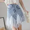 Women Skirt Short Sexy Denim Skirts Female Irregular Tassel Sequin Hip Wrap Skirt Street Mini Skirt High Waist Skirt Short Pants
