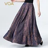 VOA Elegant Silk Yarn-dyed Jacquard Luster Print Skirts Womens Party Hidden Side Zipper A-Line Woman Skirts Vintage Skirt CE138