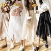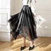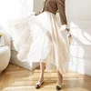 Fashion 2021 Kawaii Autumn Women Skirts High Waist Solid Gauze Girl's Folds Skirt Asymmetric Mid-calf Length Skirts for Women OL