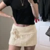 Grey Y2K Cute Vintage Solid Twist Knitted Low Waist Skirts 2000s Streetwear Lace-Up A-line Ruffles Micro Skirt Kawaii Bottoms